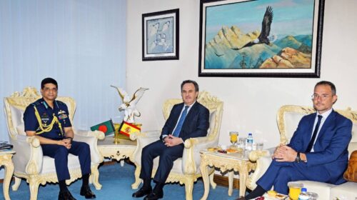 আজ বুধবার (১২ নভেম্বর ২০২৫), সম্মানিত বিমান বাহিনী প্রধান এয়ার চীফ মার্শাল হাসান মাহমুদ খাঁন, বিবিপি, ওএসপি, জিইউপি, এনএসডব্লিউসি, পিএসসি এর সাথে বাংলাদেশে নিযুক্ত স্পেনের রাষ্ট্রদূত H.E. Mr. Gabriel Sistiaga…