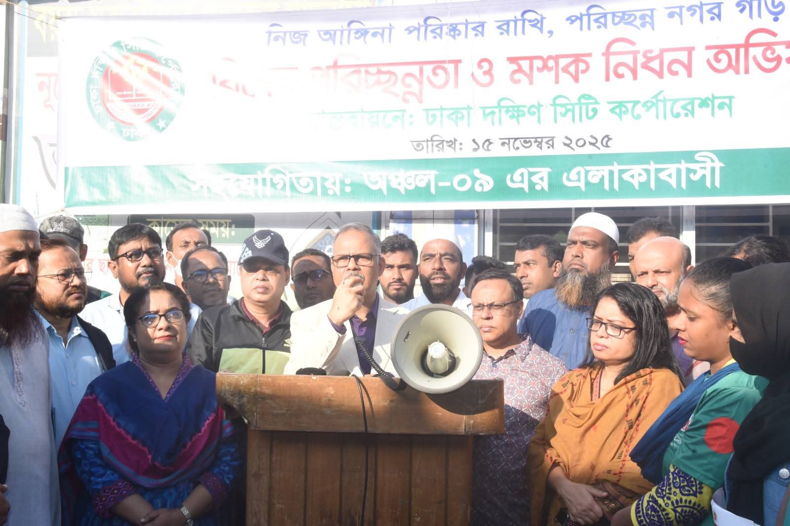 ডেঙ্গু নিয়ন্ত্রণে ঢাকা দক্ষিণ সিটি কর্পোরেশন (ডিএসসিসি) কর্তৃক আজ ডিএসসিসি এর ৬২ ও ৬৩ নং ওয়ার্ডের ভাঙ্গাপ্রেস, নয়ানগর, ছনটেক, গোবিন্দপুর, রায়েরবাগ, শেখদী ও উত্তর কুতুবখালী এলাকায় বিশেষ পরিচ্ছন্নতা ও মশক নিধন অভিযান পরিচালিত হয়েছে। পরিচালিত এ অভিযানে কর্পোরেশনের প্রশাসক জনাব মো. মাহমুদুল হাসান, এনডিসি প্রধান অতিথি হিসেবে উপস্থিত ছিলেন।