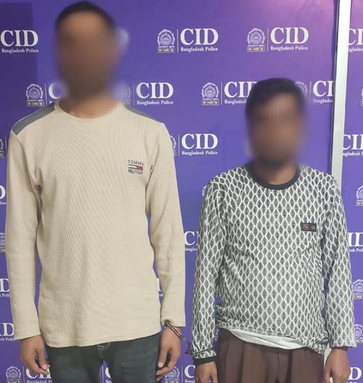 সিআইডি পুলিশ পরিচয় দিয়ে ব্যবসায়ীকে অপহরণ করে চাঁদা আদায় এবং হুমকির অভিযোগে সংঘবদ্ধ অপরাধী চক্রের দুই সক্রিয় সদস্য মো. হাসানুজ্জামান (৩৫), পিতা—মো. জাকির হোসেন, স্থায়ী ঠিকানা—বাদপুকুরিয়া, থানা/জেলা—ঝিনাইদহ এবং মো. আলমগীর শিকারী (৪৬), পিতা—মৃত আবুল কাশেম শিকারী, স্থায়ী ঠিকানা—ভাগবা, থানা—কয়রা, জেলা—খুলনা—কে গত ২২ নভেম্বর ২০২৫ সন্ধ্যা ৭:৩০ ঘটিকায় রাজধানীর হাইকোর্ট এলাকা থেকে গ্রেফতার করেছে সিআইডির সিরিয়াস ক্রাইম শাখার একটি অভিযানিক দল। চক্রটি দীর্ঘদিন ধরে সিআইডি বা পুলিশের নাম ব্যবহার করে লোকজনকে অপহরণ করে চাঁদা আদায়, মারধর এবং ভিডিও ধারণের মাধ্যমে ব্ল্যাকমেল করছিল।