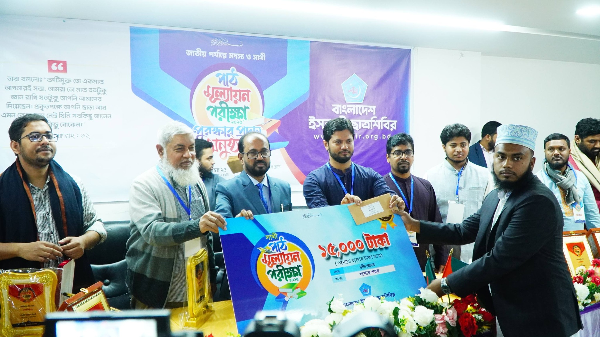 বাংলাদেশ ইসলামী ছাত্রশিবিরের সদস্য ও সাথীদের পাঠ মূল্যায়ন পরীক্ষা ২০২৫-এর জাতীয় পর্যায়ের পুরস্কার প্রদান অনুষ্ঠিত হয়েছে। এতে ২০২৫ সেশনের সদস্য ও সাথীদের পাঠ মূল্যায়ন পরীক্ষায় দেশসেরা ১০ জন করে মোট ২০ জন ও ১০ জন কেন্দ্রীয় বিভাগীয় সদস্যকে পুরস্কার প্রদান করা হয়।