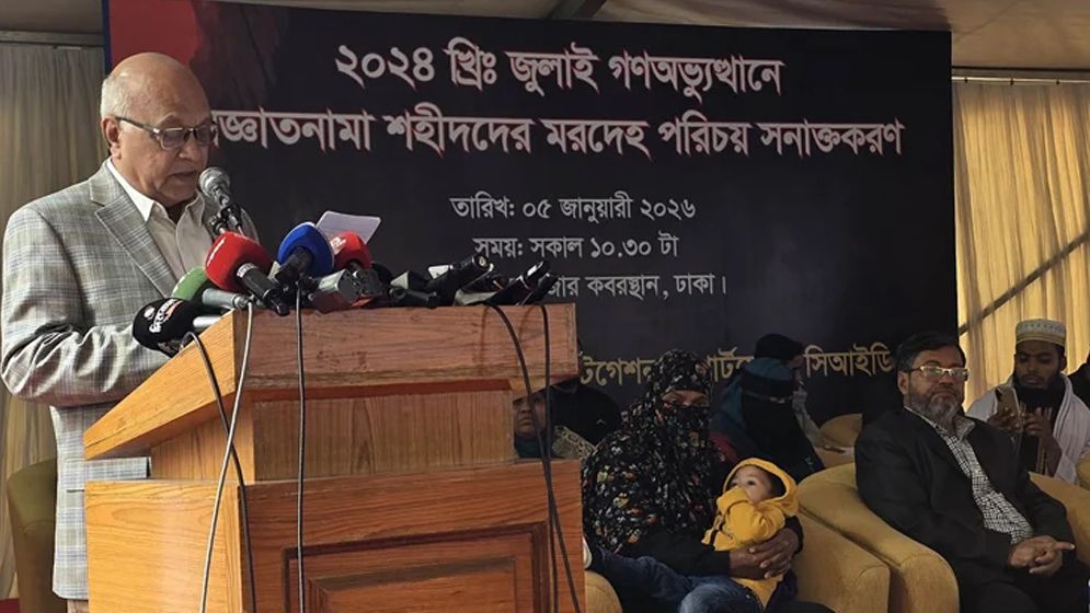 তিনি আরও বলেন, যদিও এখনো কিছু শহীদের পরিচয় উদঘাটন বাকি রয়েছে, এ প্রক্রিয়া অব্যাহত থাকবে এবং সব শহীদকে তাদের আপনজনের কাছে ফিরিয়ে দেওয়ার জন্য আমরা বদ্ধপরিকর।