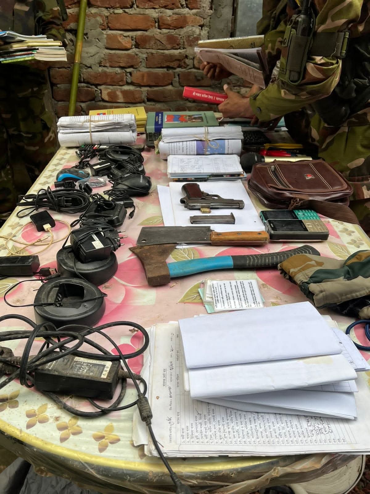 ঢাকা, ০৬ অক্টোবর ২০২৫: সুনির্দিষ্ট গোয়েন্দা তথ্যের ভিত্তিতে আজ সোমবার (০৬-১০-২০২৫) ভোর আনুমানিক ৫টায় পার্বত্য চট্টগ্রামের খাগড়াছড়ি জেলার পানছড়ি উপজেলার যুবনেশ্বর পাড়া এলাকার গভীর জঙ্গলে সেনাবাহিনীর একটি অভিযানিক দল ইউপিডিএফ এর একটি গোপন আস্তানা ঘেরাও করতঃ তল্লাশি অভিযান পরিচালনা করে। অভিযান চলাকালে সেনাবাহিনীর উপস্থিতি টের পেয়ে ঘটনাস্থল থেকে ইউপিডিএফ এর শীর্ষ স্থানীয় গ্রুপ কমান্ডার সুমেন চাকমা পালিয়ে যায়। পরবর্তীতে, উক্ত স্থানে তল্লাশি চালিয়ে ইউপিডিএফ সশস্ত্র সদস্যদের ব্যবহৃত ০১টি পিস্তল, ০১ টি ম্যাগজিন, ০২ রাউন্ড এ্যামোনিশন, ১৫ টি ব্যানার, ০২ টি ওয়াকিটকি চার্জার, ০২ টি মোবাইল ফোন, ধারালো অস্ত্র এবং বেশ কিছু সরঞ্জামাদি উদ্ধার করা হয়।