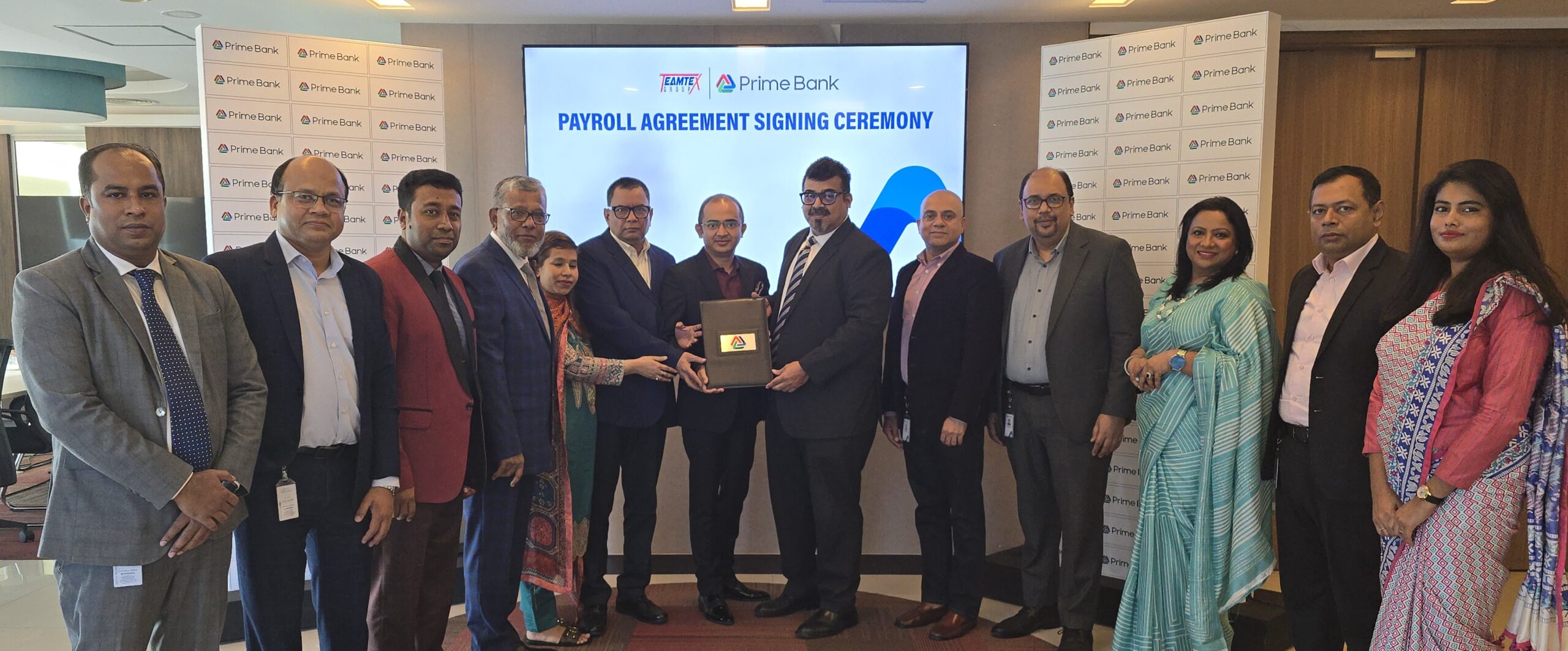 ঢাকা, জানুয়ারি ১০, ২০২৫: প্রাইম ব্যাংক পিএলসি.-এর কাছ থেকে সমন্বিত পেরোল ব্যাংকিং সেবা গ্রহণ করবে টিমটেক্স গ্রুপের সহযোগী প্রতিষ্ঠান ব্যান্ডো ইকো অ্যাপারেলস লিমিটেড। সম্প্রতি ব্যাংকের কর্পোরেট অফিসে আয়োজিত এক অনুষ্ঠানে প্রতিষ্ঠান দুটি এ সম্পর্কিত একটি চুক্তি স্বাক্ষর করে।