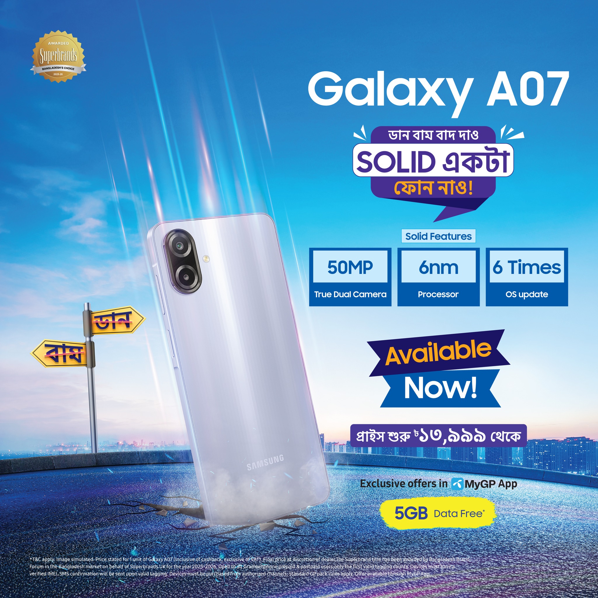 গ্যালাক্সি এ০৭ উন্মোচনের মাধ্যমে স্যামসাং আবারও প্রমাণ করেছে যে প্রতিষ্ঠানটি ব্যবহারকারীদের কথা বিবেচনা করে প্রযুক্তি উদ্ভাবন ও দামের মধ্যে সামঞ্জস্য বজায়ে নিরলস কাজ করে যাচ্ছে। স্মার্টফোনটিতে দৈনন্দিন প্রয়োজন পূরণের পাশাপাশি দীর্ঘমেয়াদি ব্যবহারযোগ্যতা ও প্রাসঙ্গিকতার ওপরও গুরুত্বারোপ করা হয়েছে। স্মার্টফোনটির বাজারমূল্য শুরু হয়েছে ১৩,৯৯৯ টাকা থেকে। (প্রেস বিজ্ঞপ্তি)