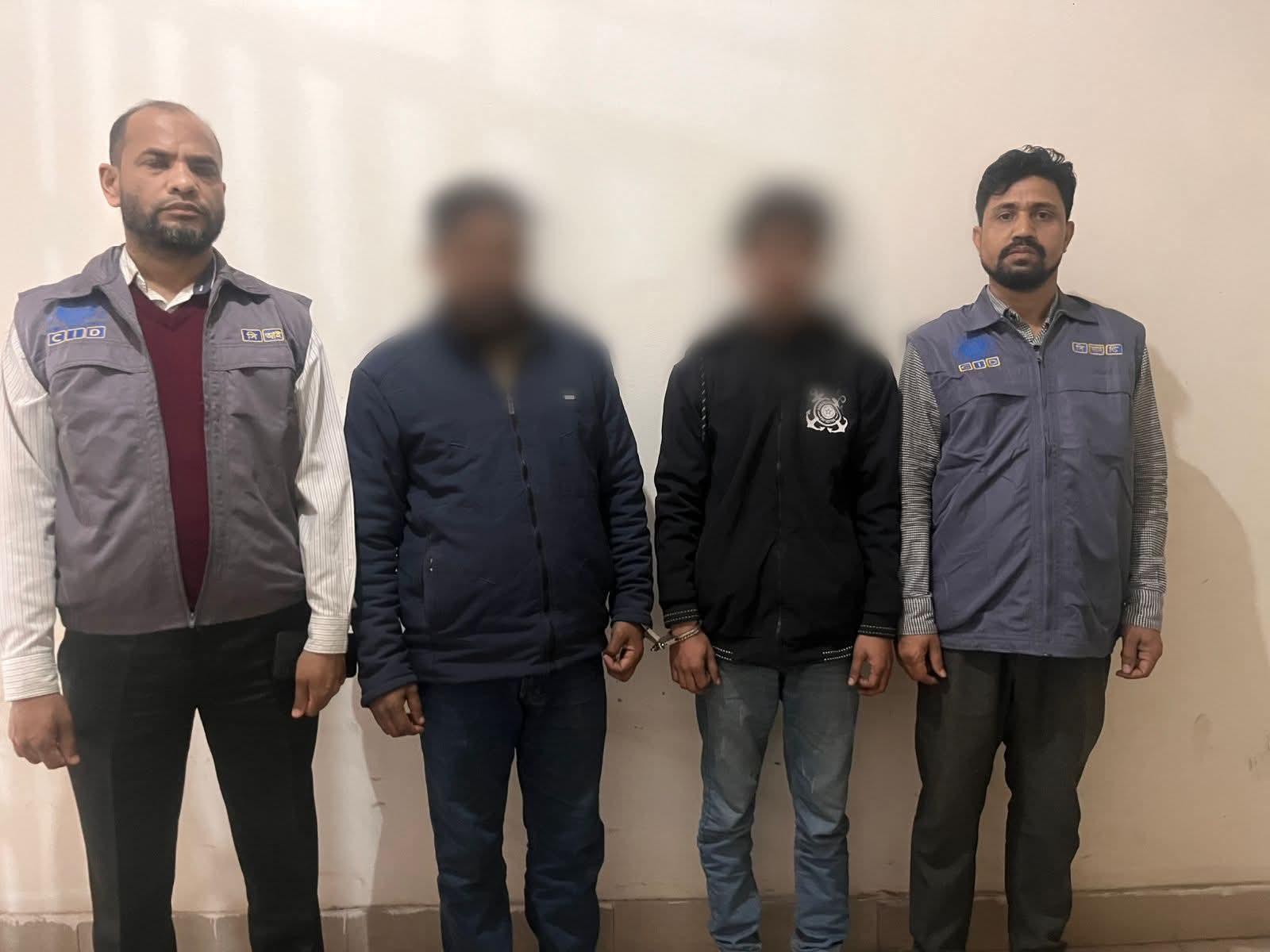 পল্টন থানার মামলা নং-১০, তারিখ-০৪/০৯/২০২৫ খ্রি., ধারা-৪২০/৪০৬/১০৯/৩৪ পেনাল কোড-এর তদন্তের ধারাবাহিকতায় সিআইডির ঢাকা মেট্রো পূর্ব বিভাগের একটি আভিযানিক দল গত ২৬/০১/২০২৬ খ্রি. রাত আনুমানিক ২০.৩০ ঘটিকার সময় ঠাকুরগাঁও জেলার পীরগঞ্জ থানা এলাকা থেকে আসামী রনজিত বসাক রওনক (২৫), পিতা-ভজন বসাক এবং ২৭/০১/২০২৬ খ্রি. রাত আনুমানিক ০২.০০ ঘটিকার সময় দিনাজপুর সদর থানাধীন সুইহারী এলাকা থেকে আসামী পলাশ চন্দ্র বসাক (৪০), পিতা-রবিদাস বসাক, মাতা-লিলা রানী বসাক-কে গ্রেফতার করে। গ্রেফতারকৃত উভয় আসামীর স্থায়ী ঠিকানা: উভয় সাং-১৫২ রানিশৈংকল, থানা- রানিশৈংকল, জেলা-ঠাকুরগাঁও।