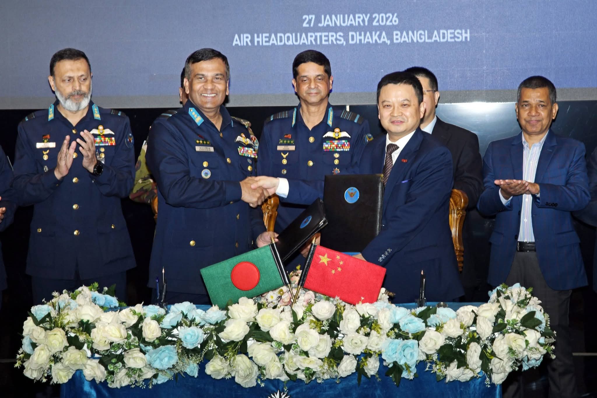 আজ মঙ্গলবার (২৭ জানুয়ারি ২০২৬) বাহিনী সদর দপ্তরে বাংলাদেশ বিমান বাহিনী এবং চায়না ইলেকট্রনিক্স টেকনোলজি গ্রুপ কর্পোরেশন ইন্টারন্যাশনাল (CETC)-এর মধ্যে Government-to-Government (G2G) এর আওতায় ইউএভি ম্যানুফ্যাকচারিং ও অ্যাসেম্বলি প্ল্যান্ট স্থাপন এবং প্রযুক্তি হস্তান্তর চুক্তি স্বাক্ষরিত হয়েছে। সম্মানিত বিমান বাহিনী প্রধান এয়ার চিফ মার্শাল হাসান মাহমুদ খাঁন, বিবিপি, ওএসপি, জিইউপি, এনএসডব্লিউসি, পিএসসি অনুষ্ঠানে প্রধান অতিথি হিসেবে উপস্থিত ছিলেন। ‘মনুষ্যবিহীন আকাশযান (UAV)’ উৎপাদন ও সংযোজন কারখানা স্থাপন এবং প্রযুক্তি হস্তান্তর (TOT) প্রকল্পের জন্য চুক্তিটি স্বাক্ষরিত হয়।