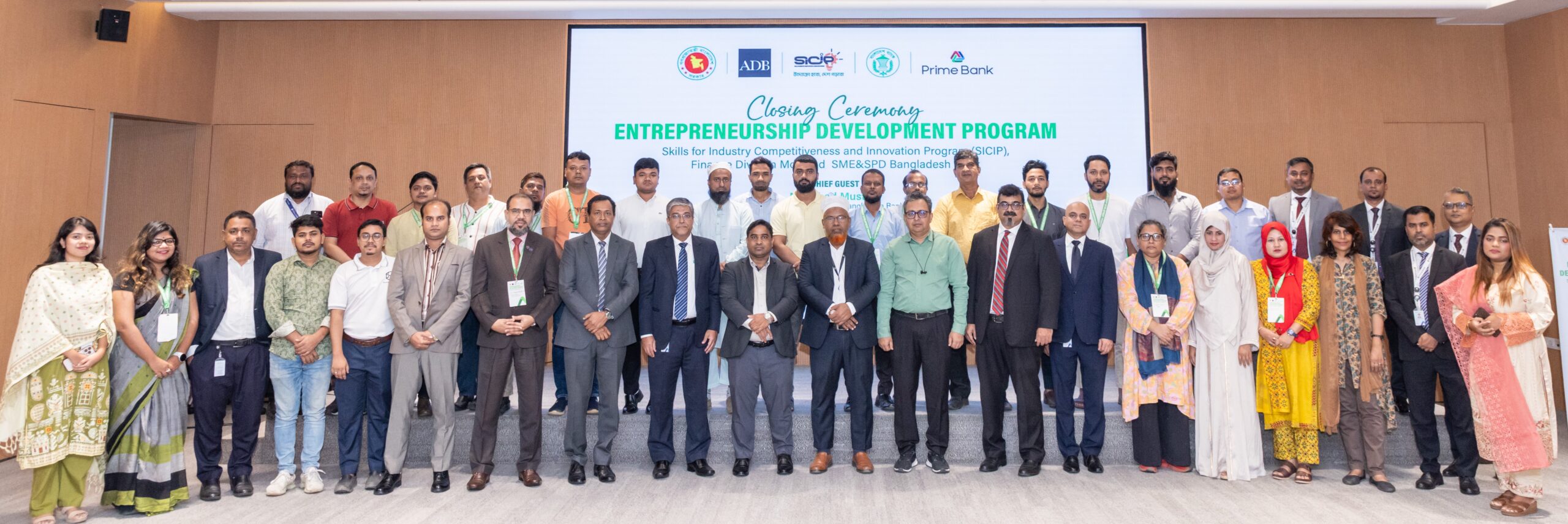 ঢাকা, ১১ অক্টোবর ২০২৫: বাংলাদেশ ব্যাংক ও প্রাইম ব্যাংক পিএলসি.-এর যৌথ উদ্যোগে মাসব্যাপী উদ্যোক্তা উন্নয়ন প্রশিক্ষণ কর্মসূচি সফলভাবে সম্পন্ন হয়েছে। এশীয় উন্নয়ন ব্যাংক (এডিবি)-এর অর্থায়নে এবং অর্থ মন্ত্রণালয়ের অর্থ বিভাগের বাস্তবায়নে “স্কিলস ফর ইন্ডাস্ট্রি কম্পিটিটিভনেস অ্যান্ড ইনোভেশন প্রোগ্রাম (SICIP)”-এর আওতায় এই প্রশিক্ষণ কর্মসূচির আয়োজন করা হয়।