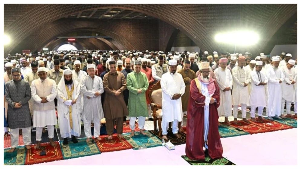 বাংলাদেশ জাতীয় সংসদ ভবনের টানেলে (দক্ষিণ প্লাজার নিচে) ঈদুল ফিতরের নামাজের জামাত অনুষ্ঠিত হয়েছে।