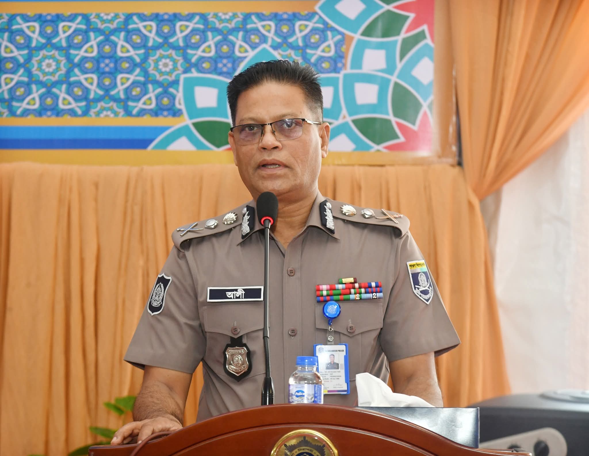 ইন্সপেক্টর জেনারেল অব পুলিশ (আইজিপি), বাংলাদেশ জনাব মোঃ আলী হোসেন ফকির আইনশৃঙ্খলা রক্ষায় আরও কার্যকর ভূমিকা পালনের জন্য পুলিশ সদস্যদের প্রতি আহ্বান জানিয়েছেন।