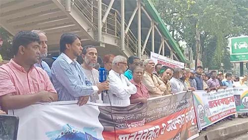 ঢাকা-সিলেট মহাসড়কের জীর্ণদশা দূরীকরণ, রেলপথ সংস্কার ও আকাশপথে অস্বাভাবিক ভাড়া কমানোসহ ৮ দাবিতে ঢাকায় বিক্ষোভ করেছে ঢাকাস্থ সিলেটবাসীদের একাংশ। এসময় তারা সিলেটের যোগাযোগ ব্যবস্থার উন্নয়ন না করলে রেমিট্যান্স পাঠানো বন্ধসহ কঠোর আন্দোলনের হুঁশিয়ারি দেন। আজ শনিবার জাতীয় প্রেসক্লাবে সকাল সাড়ে ১০টার দিকে ঢাকাস্থ বৃহত্তর সিলেটবাসীর’ ব্যানারে আয়োজিত মানববন্ধন ও অবস্থান কর্মসূচিতে এসব কথা বলেন। মানববন্ধনে অংশ নেয়া সিলেটবাসীরা বলছেন, ঢাকা-সিলেট মহাসড়ক, রেলওয়ে ও বিমানপথে চলমান জনদুর্ভোগ চরমে পৌঁছেছে। দীর্ঘদিন ধরে অবহেলিত এই অঞ্চলের জনগণ প্রতিদিন নানামুখী ভোগান্তির শিকার হচ্ছেন। সিলেট দেশের অন্যতম গুরুত্বপূর্ণ অর্থনৈতিক ও পর্যটন অঞ্চল। অথচ সড়ক, রেল ও বিমান যোগাযোগ ব্যবস্থার অব্যবস্থাপনা এই অঞ্চলের উন্নয়নকে বাধাগ্রস্ত করছে।