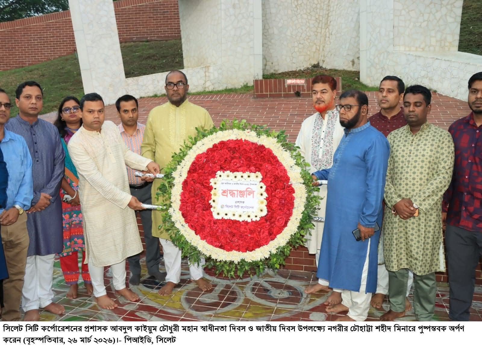 মহান স্বাধীনতা ও জাতীয় দিবস উপলক্ষ্যে মহান স্বাধীনতা আন্দোলনের বীর শহিদদের স্মৃতির প্রতি শ্রদ্ধা নিবেদন করেছেন সিলেট সিটি কর্পোরেশনের (সিসিক) প্রশাসক আব্দুল কাইয়ুম চৌধুরী।