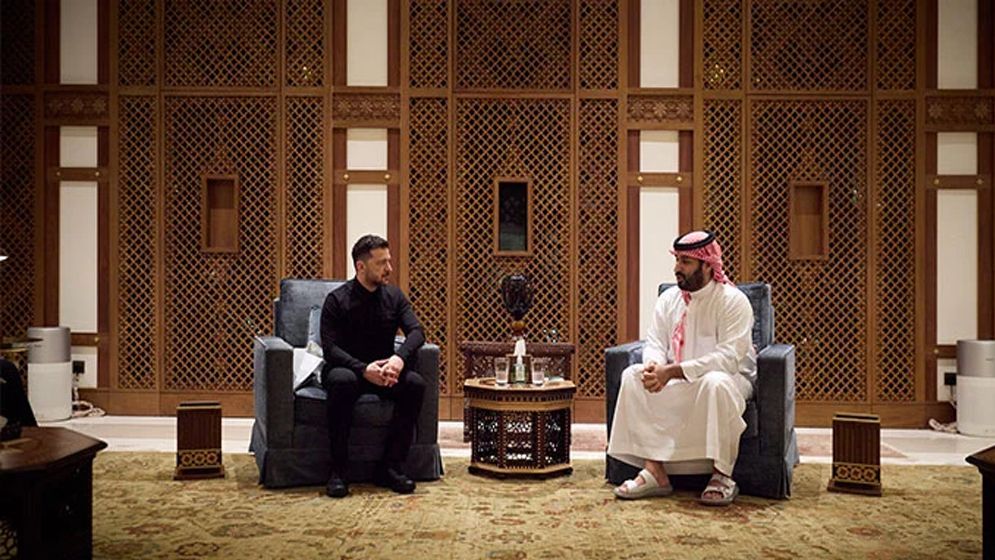 এক প্রতিবেদনে সৌদি প্রেস এজেন্সি (এসপিএ) জানায়, শুক্রবার (২৭ মার্চ) সৌদি আরবের যুবরাজ মোহাম্মদ বিন সালমানের সঙ্গে সাক্ষাৎ করেছেন ইউক্রেনের প্রেসিডেন্ট ভলোদিমির জেলেনস্কি।