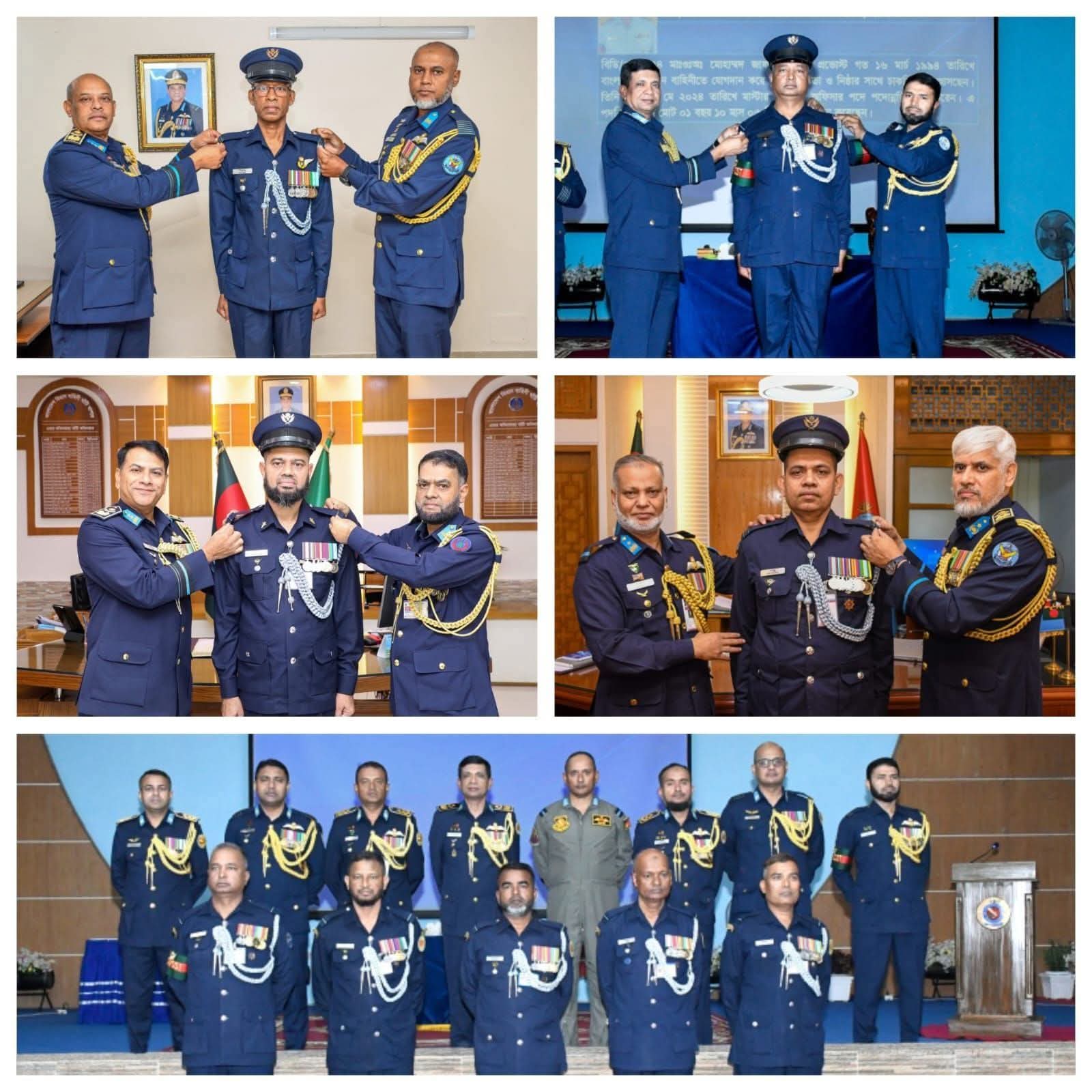 ঢাকা,২৮ মার্চ ২০২৬: মহান স্বাধীনতা দিবস- ২০২৬ উপলক্ষ্যে সম্মানিত বিমান বাহিনী প্রধান এয়ার চীফ মার্শাল হাসান মাহমুদ খাঁন, বিবিপি, ওএসপি, জিইউপি, এনএসডব্লিউসি, পিএসসি- এর দিকনির্দেশনায় গত ২৬শে মার্চ ২০২৬ তারিখে বিমান বাহিনীর ০৩ জন অনারারি ফ্লাইং অফিসার কে অনারারি ফ্লাইট লেফটেন্যান্ট এবং ০৬ জন মাস্টার ওয়ারেন্ট অফিসার কে অনারারি ফ্লাইং অফিসার পদবী আনুষ্ঠানিকভাবে প্রদান করা হয়।