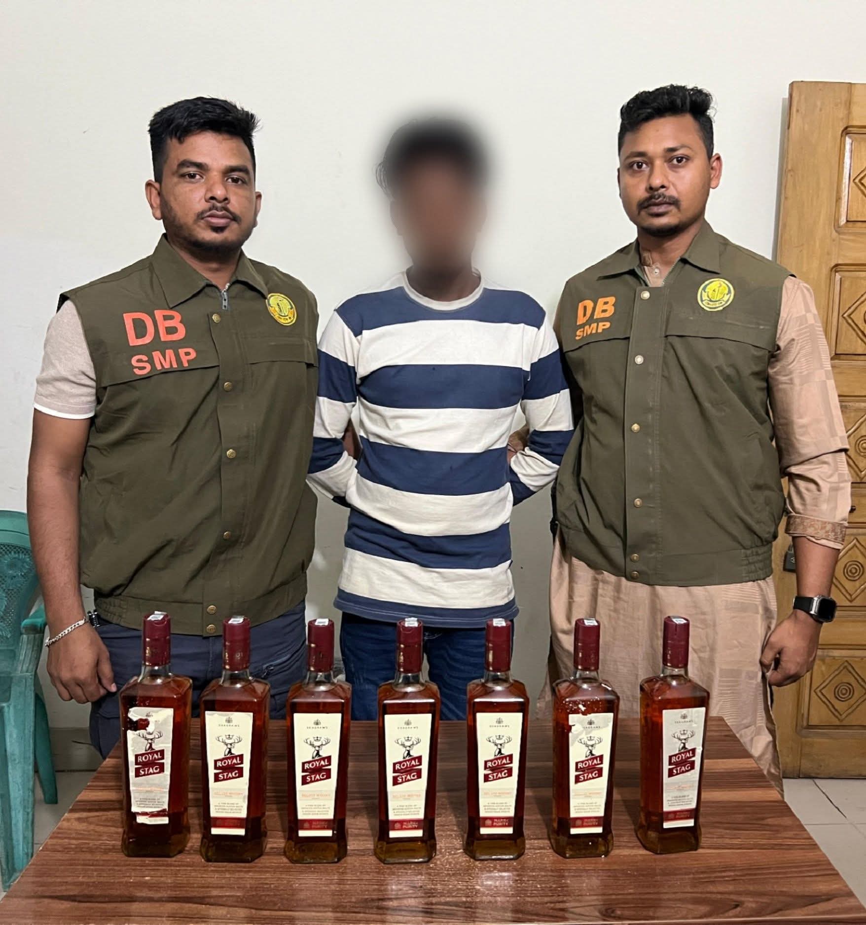 গত ২৮/০৩/২০২৬খ্রি: রাত আনুমানিক ১৯.৪০ ঘটিকায় মহানগর গোয়েন্দা পুলিশ শাহপরাণ (রহঃ) থানাধীন তামাবিল রোড পূর্ব পীরেরবাজারস্থ FANTASY FITNESS CLUB এর পিছনে এবং আতিক কনভেনশন হলের পূর্বে খালি জায়গায় অভিযান পরিচালনা করে ৭৫০ ml এর ০৭ বোতল ROYAL STAG ভারতীয় মদসহ রাশেদ আহমদ (২৬), পিতা-মোঃ আমান উল্লাহ বিলাল, মাতা-লিবিয়া বেগম, সাং-পীরেরচক, আটগাঁও, খাদিমনগর, থানা-শাহপরাণ (রহঃ), জেলা-সিলেট‘কে আটক করেন।