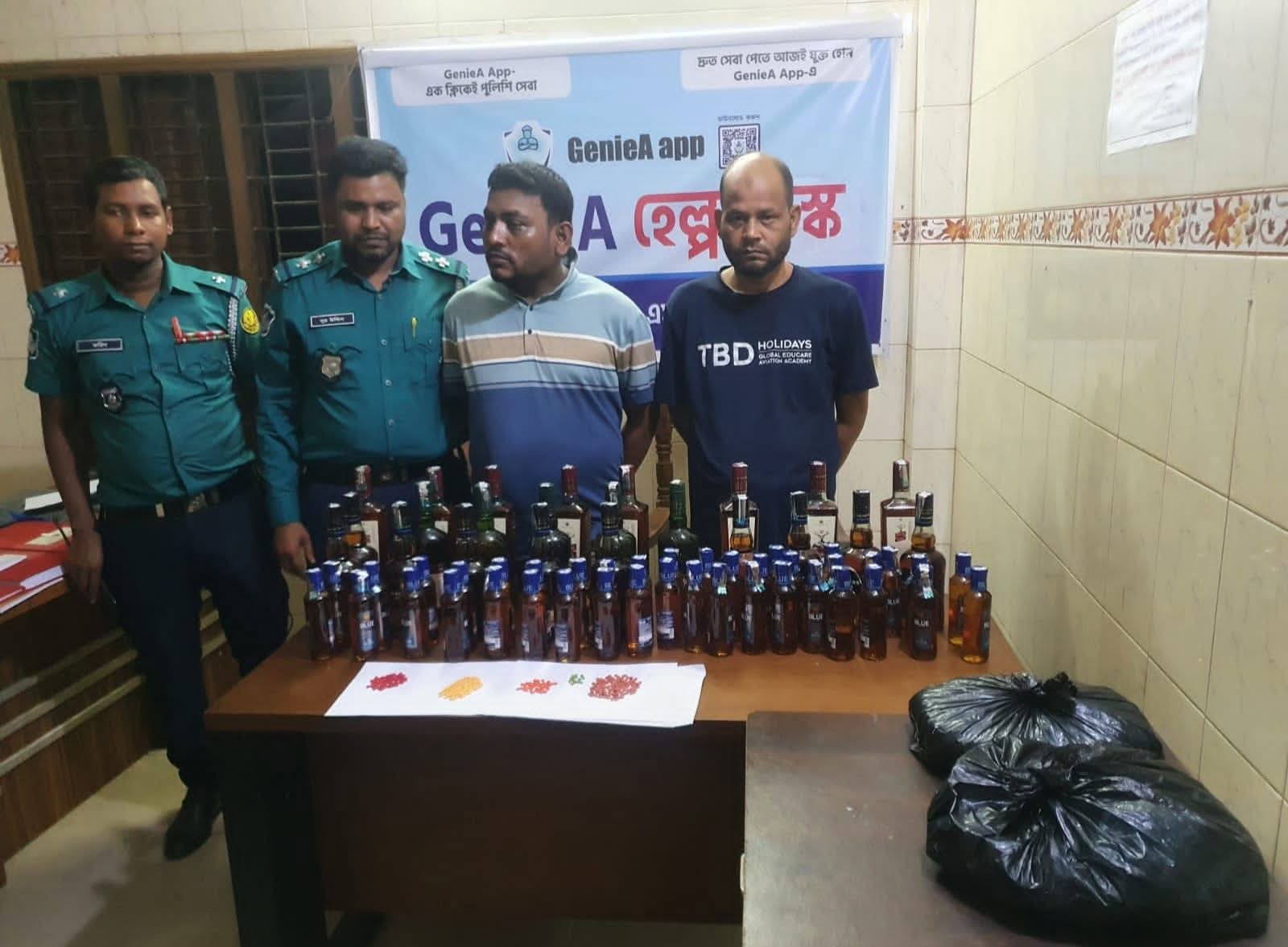 অভিযানে উভয় আসামীর নিকট হতে সর্বমোট ৩৫০ পিস ইয়াবা, ০১ কেজি ৫০০ গ্রাম গাঁজা, ৬৩ বোতল বিভিন্ন ব্র্যান্ডের বিদেশি মদ, ০১ বক্স মাদক সেবনের সহায়ক উপাদান হিসেবে ব্যবহৃত ফুয়েল পেপার এবং ০৪ বক্স অ্যালুমিনিয়াম ফয়েল উদ্ধার করা হয়।