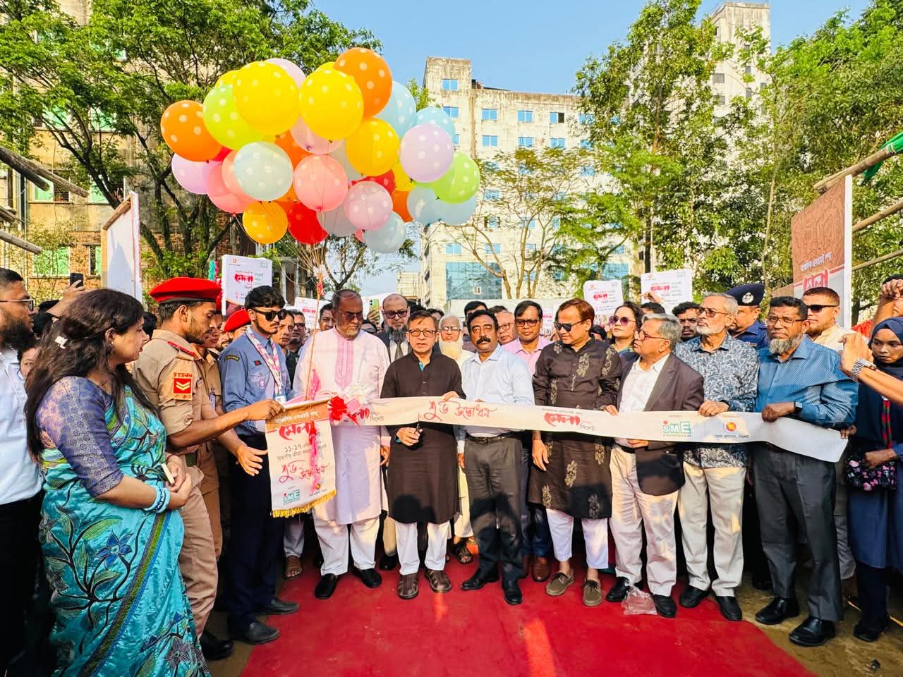 এসএমই ফাউন্ডেশনের উদ্যোগে ১১ এপ্রিল ২০২৬ সিলেট ক্রীড়া কমপ্লেক্স অডিটোরিয়ামে আঞ্চলিক এসএমই পণ্য মেলা শুরু হয়ে চলবে ১৭ এপ্রিল পর্যন্ত। ১১ এপ্রিল ২০২৬ সিলেট ক্রীড়া কমপ্লেক্স অডিটোরিয়ামে মেলার উদ্বোধন করেন প্রধান অতিথি বাণিজ্য, শিল্প এবং বস্ত্র ও পাট মন্ত্রী খন্দকার আব্দুল মুক্তাদির এমপি। সিলেট জেলা প্রশাসক মো. সারওয়ার আলমের সভাপতিত্বে উদ্বোধনী অনুষ্ঠানে বিশেষ অতিথি ছিলেন সিলেট সিটি কর্পোরেশনের প্রশাসক আব্দুল কাইয়ুম চৌধুরী, এসএমই ফাউন্ডেশন চেয়ারপার্সন ও শিল্পসচিব মো. ওবায়দুর রহমান, ব্যবস্থাপনা পরিচালক আনোয়ার হোসেন চৌধুরী, সিলেট বিভাগীয় কমিশনার খান মো. রেজা-উন-নবী, সিলেট রেঞ্জ ডিআইজি মো. মুশফেকুর রহমান, পুলিশ কমিশনার আবদুল কুদ্দুছ চৌধুরী, পিপিএম এবং পুলিশ সুপার ড. চৌধুরী মো. যাবের সাদেক। অনুষ্ঠানে বাণিজ্য, শিল্প এবং বস্ত্র ও পাট মন্ত্রী খন্দকার আব্দুল মুক্তাদির এমপি বলেন, এমএসএমই খাত দেশের অর্থনীতির আসল চালিকাশক্তি। সরকার নীতি সহায়তা দিতে পারে, কিন্তু বাস্তব পরিবর্তন আসে এমএসএমই উদ্যোক্তাদের হাত ধরেই। এই মেলা শুধু একটি প্রদর্শনী নয়, এটি একটি প্ল্যাটফর্ম। এখানে উদ্যোক্তাগণ নিজেদের পণ্য প্রদর্শন, নতুন ক্রেতার সাথে সংযোগ স্থাপন এবং ভবিষ্যতের ব্যবসার পথ তৈরি করতে পারছেন। আমি আশা করি, সিলেট অঞ্চলের উদ্যোক্তাগণ এই সম্ভাবনাকে বাস্তবে রূপ দিতে সক্ষম হবেন এবং ভবিষ্যতে এই অঞ্চল দেশের অন্যতম গুরুত্বপূর্ণ রপ্তানিমুখী শিল্পকেন্দ্রে পরিণত হবে। এসএমই ফাউন্ডেশন চেয়ারপার্সন ও শিল্পসচিব মো. ওবায়দুর রহমান বলেন, শিল্প মন্ত্রণালয়ের উদ্যোগে জাতীয় এসএমই নীতিমালা ২০২৬ শীঘ্রই চূড়ান্ত করা হবে, যেখানে এই খাতের উন্নয়নে সরকারের সুস্পষ্ট দিক নির্দেশনা থাকবে। এই নীতিমালার রূপকল্প হলো, ‘বৈষম্যহীন টেকসই ভবিষ্যৎ বিনির্মাণে ক্ষুদ্র ও মাঝারি শিল্পের ক্ষমতায়ন’। নীতিমালায় ২০৩০ সালের মধ্যে জাতীয় আয়ে এসএমই খাতের অবদান ৩৫ শতাংশে উন্নীত করার লক্ষ্যমাত্রা নির্ধারণ করা হয়েছে। এই লক্ষ্য অর্জনে অর্থ প্রাপ্তির সুযোগ বৃদ্ধি, বাজারে প্রবেশের সুবিধা, প্রযুক্তি ও উদ্ভাবন সক্ষমতা বৃদ্ধি, দক্ষতা উন্নয়ন এবং নারী-উদ্যোক্তাদের ক্ষমতায়নকে অগ্রাধিকার দেয়া হয়েছে। এসএমই ফাউন্ডেশনের উদ্যোগে আঞ্চলিক এসএমই পণ্য মেলা আয়োজনের উদ্দেশ্য: